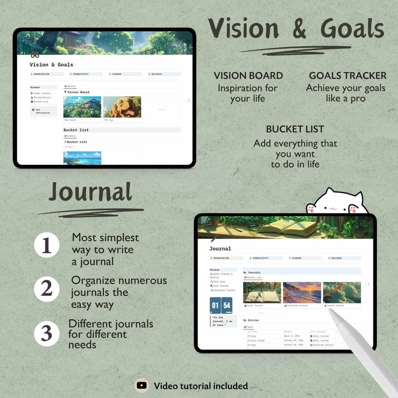 Vision Board, Goals Tracker, Affirmations, Manifestation, Bucket List.