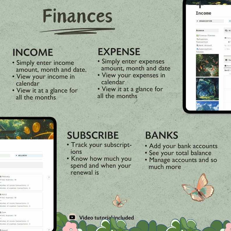 Income Tracker, Expenses Tracker, Bank Account, Subscription Tracker.