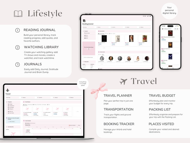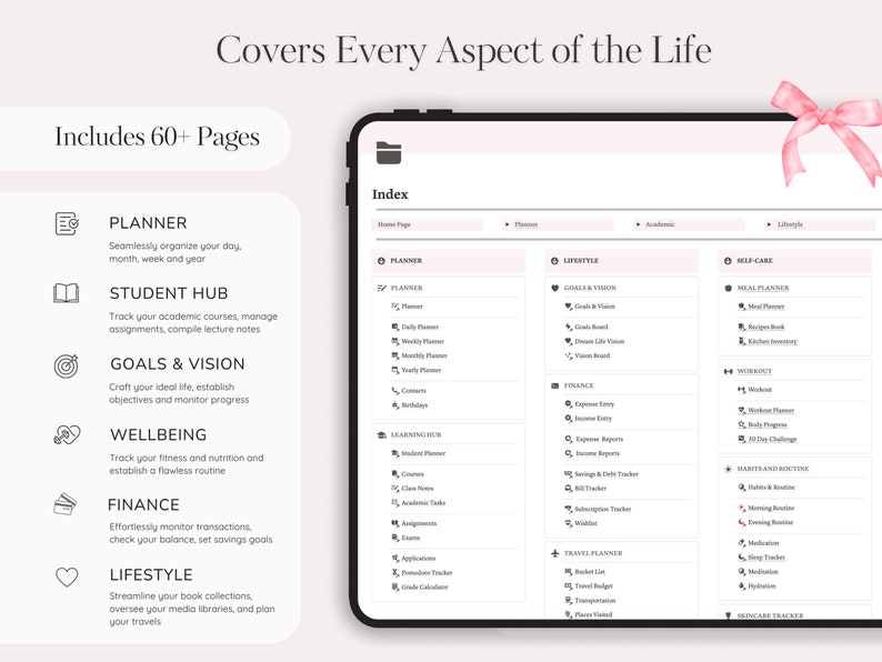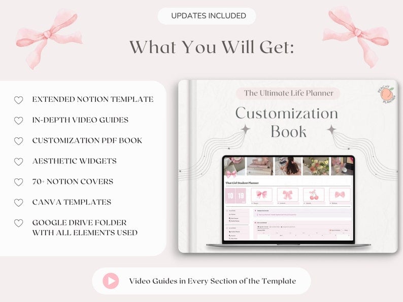 YouTube Video Guides for Each Section ✧ Auto-Updating Templates ✧ All Essential Pages You Need ✧ Easy to Customize ✧ Simple Navigation ✧ Created by a UX Designer