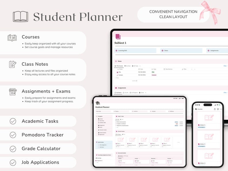 Introducing That Girl Student Planner, your ultimate companion for a simplified and enriched daily and academic life. This Notion template is thoughtfully crafted, highly customizable, and designed to keep you organized and focused on achieving your goals.